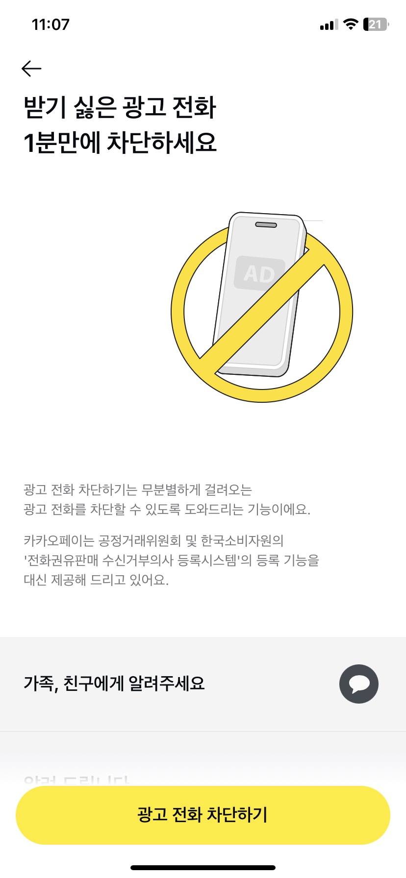 - 카카오페이 > 전체 > 더보기 > 광고 전화 차단하기